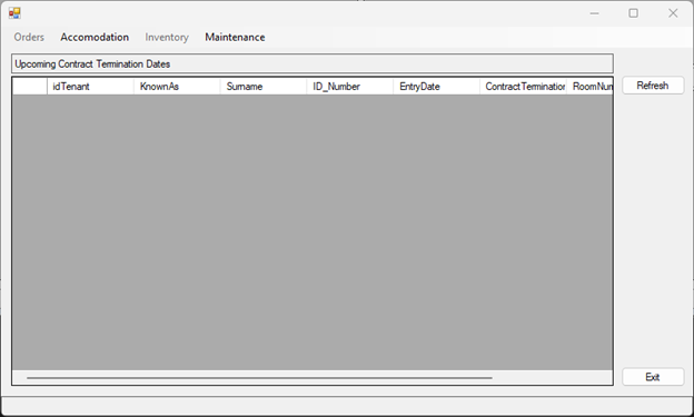 REFRESH - RELOADS THE UPCOMING CONTRACT TERMINATION DATES (NEXT 7 DAYS)
