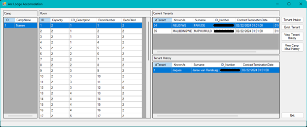 Allows intake of a new tenant into the room that is currently selected in the room grid view, please note that a room has a specific capacity and the system will enforce a maximum amount of tenants less than or equal to the capacity of the room.