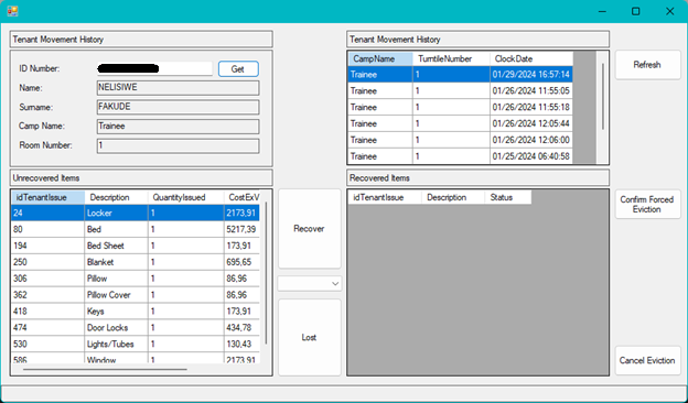 Note: If a tenant as been evicted it would take approximately 1 minute for him to be automatically blocked from the clocks on the camp from which he has been evicted. He will no longer be able to receive meals.