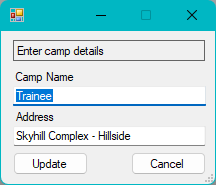 Closes the form and returns to the Maintain Camp menu.