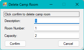Click yes to confirm that you want to delete the room or no to cancel.