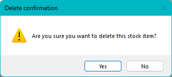 Click yes to confirm the item deletion, or no to cancel.