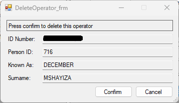 The selected operator information will be automatically loaded into the respective fields, click the confirm button to delete the operator.