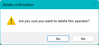 Click Yes to confirm the deletion of the operator in question, or No to cancel the process.